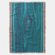 A View of Wood - The abstract design of stripes and shapes on this Throw Blanket was made from an original photograph by ZoeSPEAK of wood. In these shades of aqua blue with bits of red, running horizontally, it looks a bit like a profile of water, rippling on top and level at the bottom, with mysterious shapes beneath the surface.