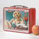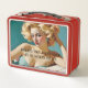 This is a standard metal lunchbox that appears to work just fine. We designed this box ourselves with an uploaded photo and custom text on the front and back. It looks absolutely beautiful except the front of the lunchbox is not centered like it shows in the photo. The print borders don't align with the inset flat part of the box where the preview photo online showed it perfectly centered in there. The back looks nice and centered though.