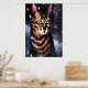 A cute Bengal cat in the snow with one blue eye and a green eye. This is a AI generated art.