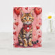 Bengal Cat Valentine Sitting with Hearts Red Card