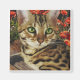 Bengal Kitten with green eyes posed against backdrop of colourful poppies is available on magnets,Totebags, apparel, cards and gifts by Friskybizpets
