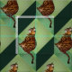 A cartoon Bengal cat sits on a background of green squares. The various shades give a 3D illusion of a stair step effect. Keep looking and it will seem as if the image shifts. Select customise to rearrange, tilt and play with the effects.