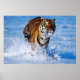 Featuring a breath taking view of a Bengal Tiger runIng in the beautiful blue ocean water with splashes of water going all over the place .this is a beautiful photo on this poster