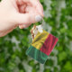 Keychain with the flag of Benin in wavy fabric style design. This design features the Benin flag colours and design with a beautiful waving material textured effect. This flag design is a great way to show you are proud to be from Benin.