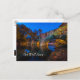 Get well soon postcard featuring a stunning early fall morning twilight view of the 64 ALT Bridge in Bennett Spring State Park, Bennett Springs, Missouri, USA. There are still stars out. You can see the waterfall from the dam on the other side of the bridge with a hint of some fog on this fall season morning.