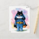 Benny Blue Bunny - Batbunny costume halloween mask autumn fall fun cute colorful, traditional whimsical illustration by Christine Karron