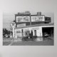 Gas station with classic cars and pickup truck, and advertising for cola, cigarettes, tires, Detrola and Supertone radios, and gasoline, Benton Harbour, Michigan. Old FSA photo taken in 1940 by photographer John Vachon.