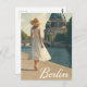 This captivating vintage poster features a stylish woman dressed in classic 1950s fashion standing gracefully near the iconic Berlin Cathedral. The majestic architecture of the cathedral looms in the background, rendered in warm, nostalgic tones with retro textures that evoke the charm of mid-century Berlin. The composition beautifully blends vintage elegance with historic urban scenery, making it perfect for lovers of fashion, history, and classic European travel art.