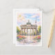 This stylish Watercolor postcard with the famous Brandenburg Gate and trendy city skyline will transport you to Berlin's historic beauty. Inspired by German architecture and culture, it's ideal for tourists and travelers as a distinctive memento, fashionable greeting, or unforgettable memento. The bustling capital of Germany and Europe is captured in this creative postcard.