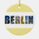 Show everyone your love for the city of Berlin Germany with this cool ornament! It contains a colour collage with photos of the Brandenburg Gate, the Berlin Wall, the Spree River, and the Bundestag dome. The background colour of the ornament can be changed using the Customise button to fit your preference.