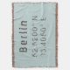 Berlin longitude and latitude coordinates in distressed fonts give this throw a modern urban look