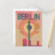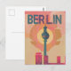 This vintage-style poster showcases the iconic silhouette of Berlin’s TV Tower (Fernsehturm), standing tall against a minimalist retro background. The bold contrast and faded tones evoke the spirit of mid-century design, capturing the modernist elegance of Berlin’s skyline. A striking tribute to one of Germany’s most recognisable landmarks — perfect for lovers of vintage travel art and urban architecture.
