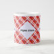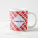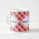 Giant coffee mug featuring a tiled diagonally Bermudian flag with the word, BERMUDA beneath. White fractal of squiggly squares holds a spot for your name for added personalisation or to create a customised gift. The flash has a red background with a Union Jack and the Bermuda coat-of-arms. Name shows on three sides of mug.