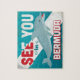 See You In Bermuda retro dolphin travel design. Charming turquoise vintage style with a cheerful swimming dolphin.