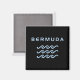 Stylised design shows three ocean or water waves and the word "Bermuda" above in a cool modern text. Design is all-blue.