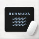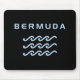 Stylised design shows three ocean or water waves and the word "Bermuda" above in a cool modern text. Design is all-blue.