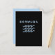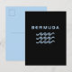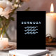 Stylised design shows three ocean or water waves and the word "Bermuda" above in a cool modern text. Design is all-blue.