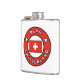 The flask itself is fine. It’s a cheap flask, obviously bought in bulk, however am prepared to overlook that. Given that it is a personalized item, I would have liked to have seen gift boxing instead of the generic packaging. Terrible printing, and/or quality. It’s a cheap, tacky vinyl. It is not cut straight and is also applied in a way that it is overhanging the bottom, causing the glue to catch on items and it will eventually roll and tear, damaging the wrap.