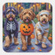 Bernedoodle Dogs Trick-or-Treating in Halloween Co Square Sticker