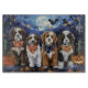 Unleash the spooky spirit with this eerie Halloween design featuring a pack of dogs under a dark, moonlit sky, surrounded by flying bats and glowing pumpkins. Perfect for those who love a touch of frightful fun with their furry friends!