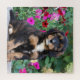 Bernedoodle puppy in petunias jigsaw puzzle