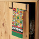 Bernese Countdown Christmas Advent Calendar Dog kitchen towel features a watercolor of a Bernese Mountain with a Christmas hat and a red scarf with dots. Funny design for Dog Lovers!