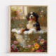 Elevate your bathroom decor with our stunning canvas print featuring a playful Bernese Mountain Dog enjoying a relaxing bath full of bubbles and beautiful flowers. This charming artwork adds a touch of warmth and personality to your space, making it feel more inviting and joyful.