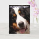 Greetings card featuring a funny portrait of a Burnese Mountain Dog. Front text reads "Happy Birthday", inside text reads "Hope you have a great day!" Text can be customised.