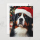 A gorgeous Bernese Mountain Dog in a Santa hat