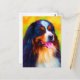 Bright, vibrant and colourful pet portrait painting of Heidi a beautiful Bernese Mountain Dog. Original artwork by Michelle Wrighton.