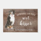 Funny beware of the wet kisser" Bernese Mountain Dog door mat set on a rustic faux background. Visit our shop to view a large assortment of dog breads