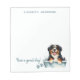 Cute dog watercolor illustration of a happy Bernese Mountain dog in a bathtub. Great for dog lovers. Ready to be personalised with your name on top and the bottom says "Have a great day!" which can be changed if you want. Great for dog lovers, poodle owners, dog groomers, dog sitters, and veterinarians.