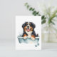 Cute dog watercolor illustration of a happy Bernese Mountain dog in a bathtub. Great for dog lovers.