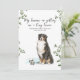 Let your first baby help share the big news. This watercolor pregnancy announcement features a sweet illustrated Bernese Mountain Dog proudly holding a tiny baby bodysuit as they announce the arrival of a new little human.