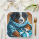 Bernese Mountain Dog With Christmas Gift Paper Plate