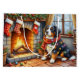 A cozy Christmas artwork featuring a majestic Bernese Mountain Dog sitting beside a glowing fireplace adorned with stockings and sparkling Christmas lights. This festive holiday scene beautifully captures the Bernese Mountain Dog’s gentle, loyal nature and love for family, making it an ideal addition to any dog lover’s home decor. Celebrate the warmth and magic of the season with this heartwarming pet-inspired artwork.
