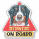Add a touch of charm to your car or truck with this vibrant "Bernese On Board" car sticker. Stick it on your rear window, your boot door or your bumper, this unique sticker features an eye-catching red triangle shaped traffic sign design, with a watercolor Bernese Mountain Dog at its centre. Perfect for any Bernese Mountain Dog owner around the world, this "Bernese On Board" sticker not only showcases your love for your furry friend, but also ensures that everyone around knows it. Order yours today and let your Bernese ride in style!