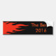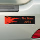 Bernie Sanders bumper sticker that reads: The Bern: 2016, black background with orange flame.