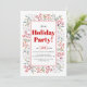 This Christmas holiday party invitation features a non-traditional design, with a frame made of berries and leaves on the front. The text stands out in bold red font, announcing the holiday party, and your details are included in the design. The back of the invitation is a solid red colour, making a festive impression. This unique invitation is sure to excite your guests and ensure that your holiday party is remembered!