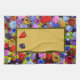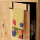 This kitchen towel has berries bordering, raspberries, even blue raspberries, fall gold / Queen Anne golden raspberries, blueberries, strawberries, blackberries, currants, boysenberries, & gooseberries