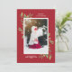 Holly and berries accent your favourite photo with your names and greeting in chic lettering in any colour on the front. CHANGE the background colour (we show red) and the frame colour, too (we show white) to match your photo. **ADD more photos or details on the back. Select Matte for heaviest paper and high definition for best print quality. MATCHING items in our store.