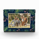 Pines branches, greenery and berries on a navy blue background surround your favourite photo on this acrylic photo block. Great as a gift or to display your favourite photo in your own home.