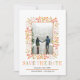 Berries and leaves border fall wedding Save the Date announcement. The front features a frame made of berries and leaves, the text "Save the Date" in a colourful font and your photo. The back is of solid burnt orange colour.