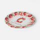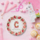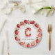 Celebrate in style with this adorable strawberry-themed round paper plate! The elegant border features a circular arrangement of hand-painted strawberries, with a mix of whole and sliced berries, delicate green leaves, and tiny white blossoms. At the centre, a beautifully illustrated letter "C" cake takes the spotlight, decorated with pink frosting, juicy strawberries, and a glowing birthday candle. The soft watercolor background blends seamless shades of blush and rosy pink, creating a festive and charming atmosphere. Perfect for strawberry-themed birthdays, fruit lovers, and summer celebrations. Pair with matching invitations and party decor for a coordinated look!