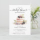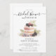 This invitation is a combination bridal shower and brunch featuring a scrumptious looking watercolor pink and white layered dessert with berries. Indulge in a spread of sweet and savory delights as we toast to the bride-to-be, amidst charming décor and cherished company. The type is a mix of modern trendy script and a classic vintage serif font.