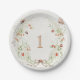 Celebrate a sweet first birthday with this charming berry-themed party plate, featuring a delicate botanical wreath with soft florals, strawberries, and whimsical garden details.