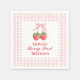 Berry first strawberry birthday Pink Bow Gingham Napkin
