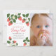 Berry First Strawberry Floral Photo 1st Birthday Invitation