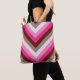 The image features a striking chevron pattern formed by bold, colourful stripes pointing downward in a "V" shape. These stripes repeat in a rhythmic fashion and alternate between rich, vibrant colours: maroon, magenta, orange, yellow, and olive green. The overall visual effect is both retro and energetic, evoking a playful yet structured aesthetic reminiscent of 1970s design trends.