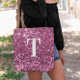 Berry Pink Faux Glitter Bokeh Sparkles Monogram Tote Bag